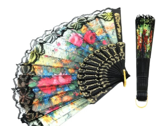 ВЕЕР С КРУЖЕВОМ, СКЛАДНОЙ ДЛЯ ЖАРКОГО ЛЕТА, ДЕКОРАТИВНЫЕ ИСПАНСКИЕ УЗОРЫ, ЦВЕТЫ