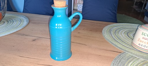 WYMIARY 19 X 8 CM SZEROKOŚC Z UCHEM 11 CM NIE WIEM CZY TO JEST PORCELANA CZY KAMIONKA - COŚ MUSIAŁEM ZAZNACZYĆ - NA PEWNO JAKAŚ CERAMIKA NO I KOREK :)