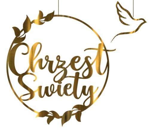 - ZESTAW DEKORACJI NA CHRZESTBANER zawieszka koło CHRZEST 30 cm zawieszka gołąbek kolor złoty