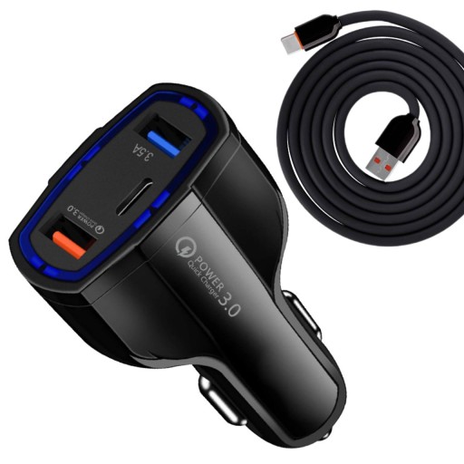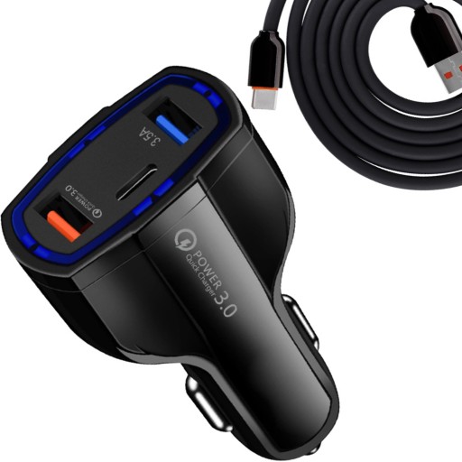 - Typ: Ładowarka samochodowa 2xUSB + 1xUSB C
