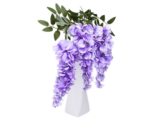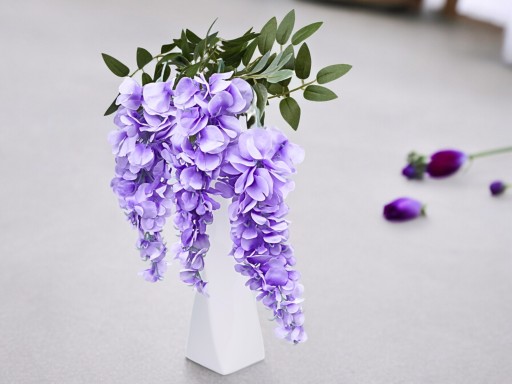 Zwis został wykonany z najwyższą starannością, co gwarantuje jego najwyższą jakość. Kwiaty są idealnie odwzorowane, wyglądają jak prawdziwe. To doskonała dekoracja do ślubnych oraz domowych kompozycji. Może być również wykorzystywana jako piękny bukiet na różne przyjęcia okolicznościowe. W połączeniu z kandelabrami stworzą wyjątkową dekorację niejednego stołu. Glicynia jest pięknym dodatkiem do tworzenia ścian kwiatowych lub efektownych zwisów w przeróżnych girlandach.