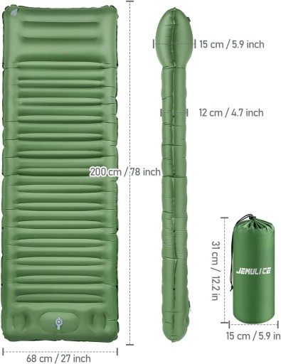 - W porównaniu do większości materacy turystycznych o grubości 6-8 cm na rynku, materac dmuchany poprawił swoją grubość dzięki strukturze w kształcie belki I, osiągając grubość 10-12 cm po pełnym napompowaniu.