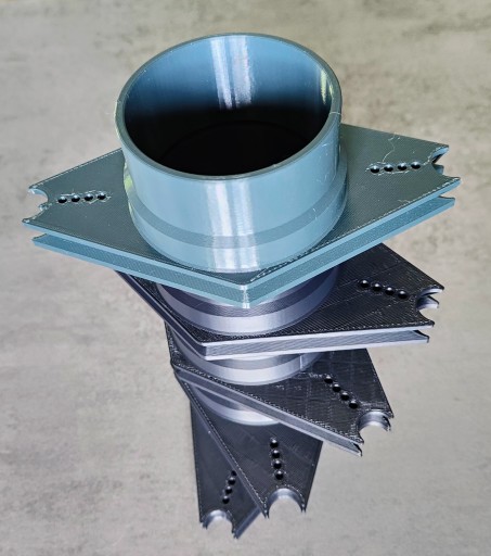 Oferuję adapter do podłączenia ogrzewania do namiotu. Poglądowy sposób montażu na zdjęciu. Średnica rury 75mm, po stronie wewnętrznej możliwość montażu kratki nawiewowej o średnicy 75mm.