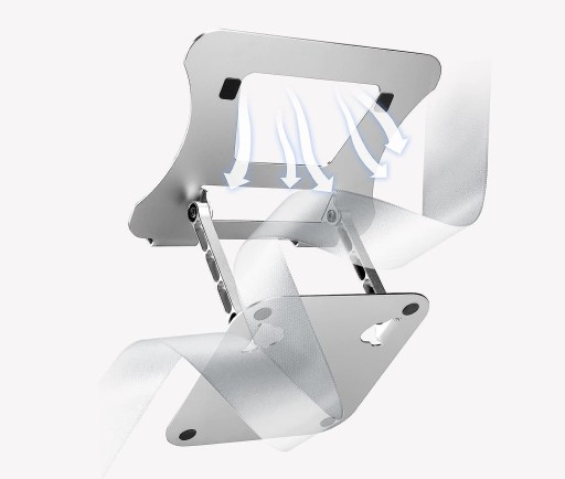 Regulacja wysokości: Umożliwia idealne dostosowanie pozycji ekranu laptopa do wysokości oczu, co zapewnia komfort pracy.