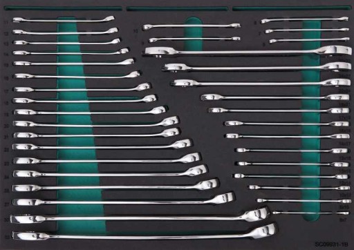 - Narzędzia do pracy w ciężkich warunkach, pod dużymi obciążeniami. Umieszczone zostały w piankowych wkładach. Zapewnia to porządek oraz łatwy dobór potrzebnego narzędzia.