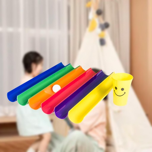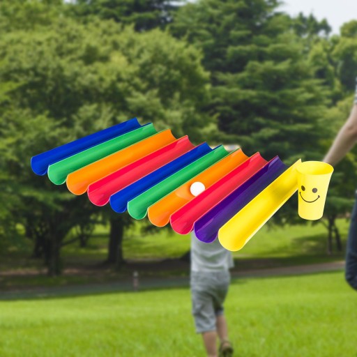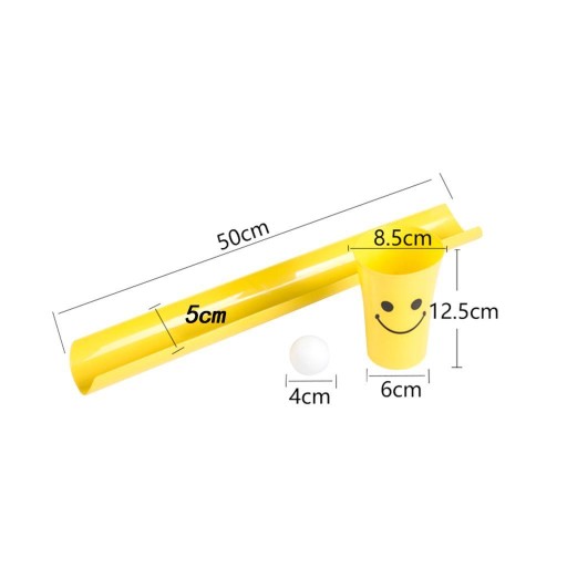 [Specyfikacja produktu]: połowa: 50 cm x 5 cm/19,69 cala x 1,97 cala, kubek: 8,5 cm x 12,5 cm/3,35 cala x 4,92 cala, średnica kulki: 4 cm/1,57 cala. (Kolory kulek i kubków są losowe)