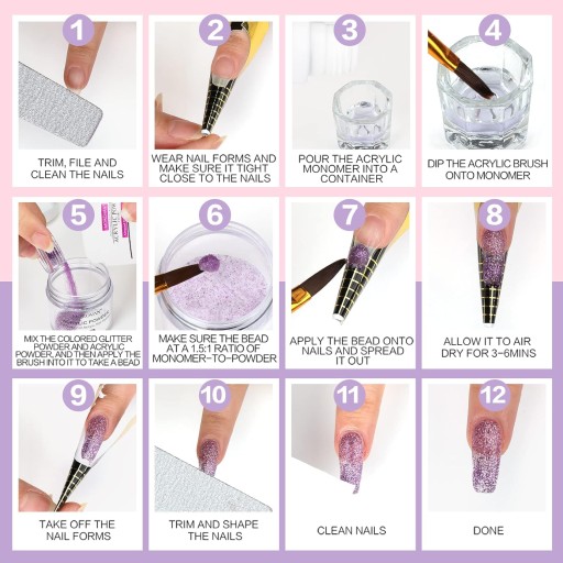 Profesjonalny zestaw do paznokci w proszku akrylowym zawiera wszystko, co potrzebne do wykonania niesamowitych paznokci akrylowych. 3 kolory proszku akrylowego, monomerowy płyn do paznokci akrylowych MOROVAN, 12 kolorów pudru brokatowego, warstwa wierzchnia, sztuczne tipy, dłonie do ćwiczeń paznokci, cyrkonie do paznokci i inne podstawowe przybory do zdobienia paznokci. Idealny zarówno dla profesjonalnej stylistki paznokci, jak i miłośniczki samodzielnego rozpoczynania paznokci akrylowych.