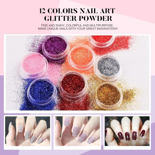 Zestaw do paznokci akrylowych Morovan 12 brokatów