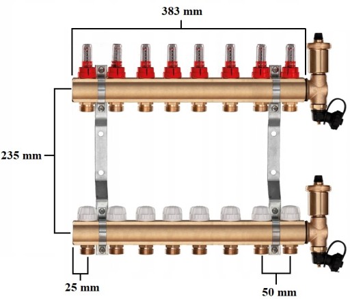 Rozdzielacz CO mosiężne do podłogówki UZBROJONY - POLSKIEGO PRODUCENTA