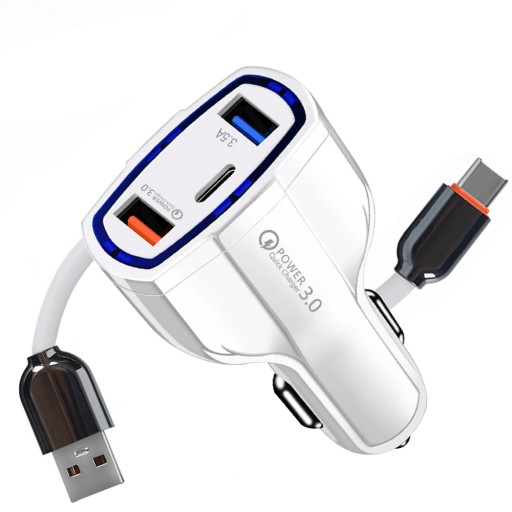 Автомобильное зарядное устройство, USB -тип C 7A QC 3.0 + USB -тип кабеля