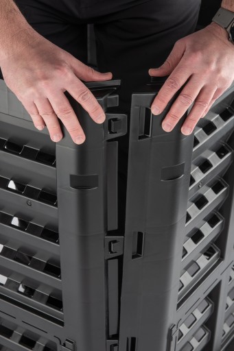 -dzięki dolnemu otworowi zakrytemu klapką u dołu kompostownika