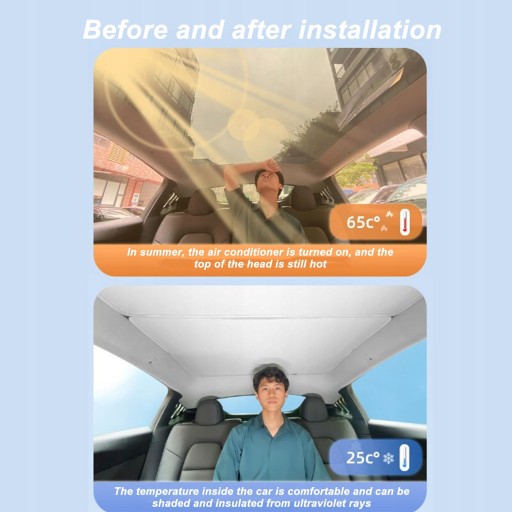 4. Energooszczędność: Dzięki osłonie przeciwsłonecznej okna dachowego temperatura wewnątrz samochodu jest niższa, co zmniejsza potrzebę ustawiania zbyt niskiej klimatyzacji, co oszczędza energię.