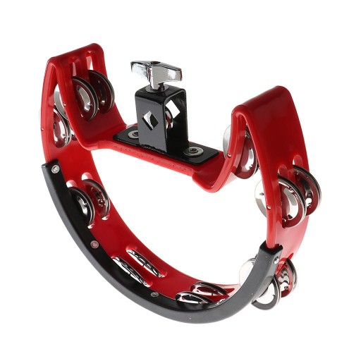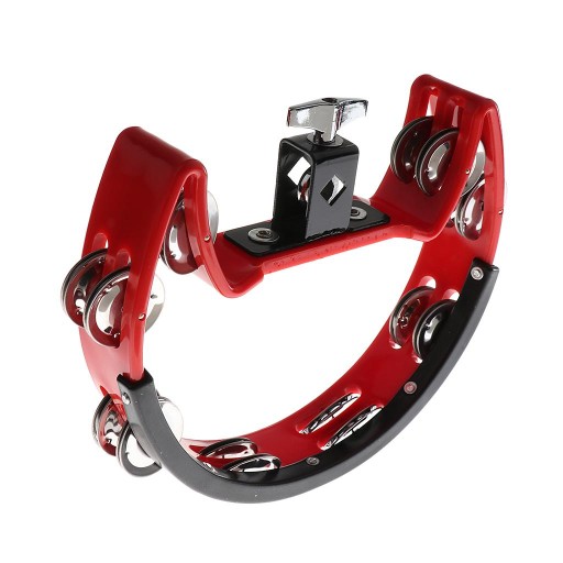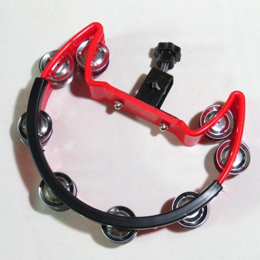 Grzechotka muzyczna z tamburynem, do akompaniamentu prekusyjnego, czerwona