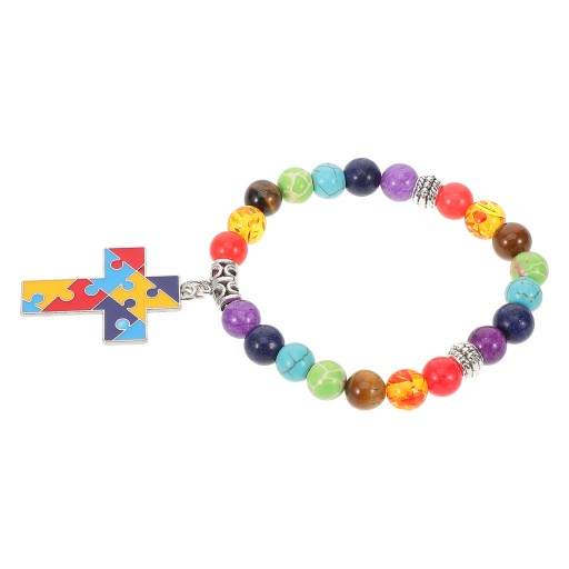 Браслет из бусин из натурального камня. Декоративный браслет с подвеской в виде креста. Разноцветный.