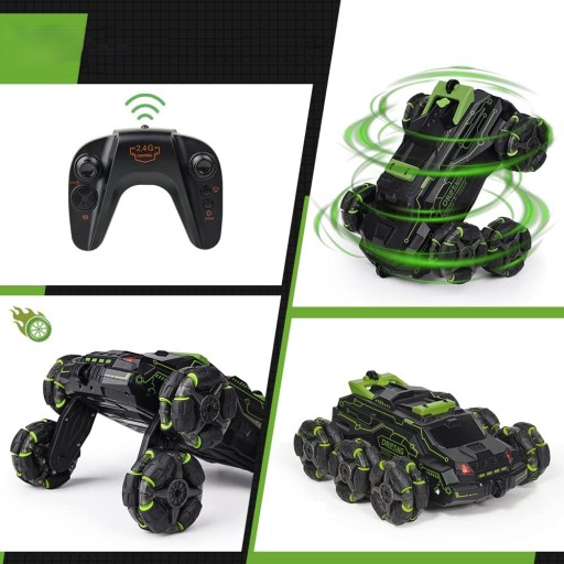 - Jest to sześciokołowy samochód kaskaderski, który może obracać się w zakresie 360° bez martwego pola, co ułatwia jazdę przy przewróceniu.