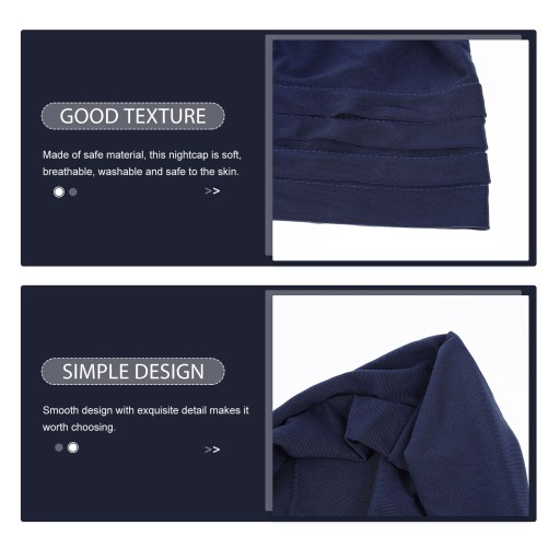 Jest to wygodna i elastyczna czapka do spania, wykonana z wysokiej jakości i odpornej na zużycie bawełny i lnu, lekka i bezpieczna. Nadaje się do użytku domowego, spania lub prania itp. Gładka konstrukcja z wykwintnymi detalami sprawia, że warto ją wybrać. Odpowiedni dla dorosłych do stosowania i ochrony włosów. Jest trwały i praktyczny.