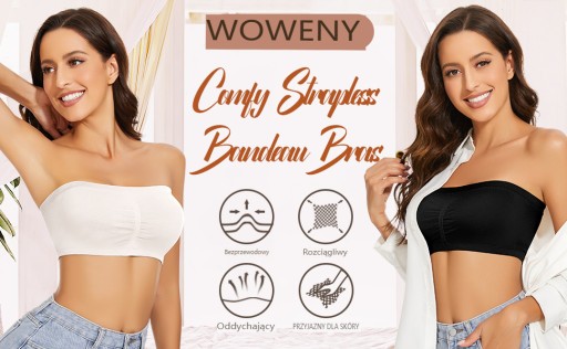 WOWENY Biustonosz Bandeau Wyściełany biustonosz bez ramiączek, Bezszwowy top bez ramiączek