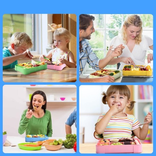 Pudełka śniadaniowe są przeznaczone do lunchów i zbilansowanych, zdrowych posiłków, idealne na lunche do szkoły dla dzieci i posiłki dla dorosłych w pracy, na treningach, na kempingu i w podróży.