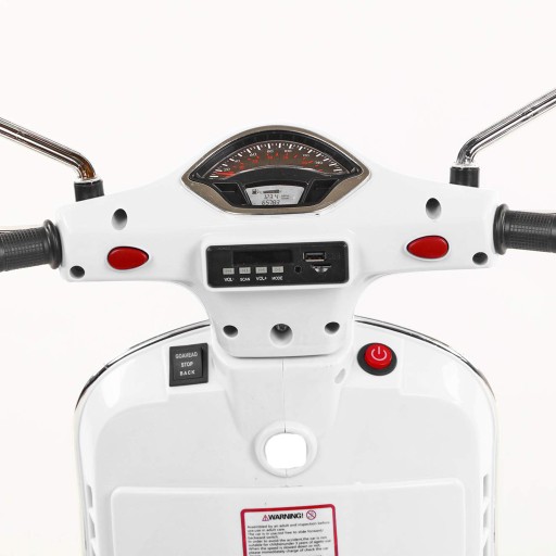 Przedstawiamy elektryczny skuter Vespa dla dzieci, ekscytującą i bezpieczną zabawkę jeździk, która zachwyci maluchy i zapewni spokój rodzicom. Ten skuter jest zaprojektowany, aby dostarczać niekończącą się radość dzieciom, jednocześnie dbając o ich bezpieczeństwo dzięki zaawansowanym funkcjom i wysokiej jakości wykonaniu.