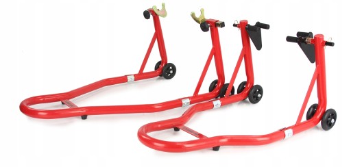 ✔️ Uniwersalne dwa stojaki przód i tył z 3 końcówkami co pozwala na poniesienie motocykla z przodu i z tyłu.