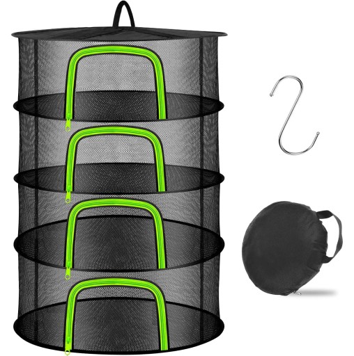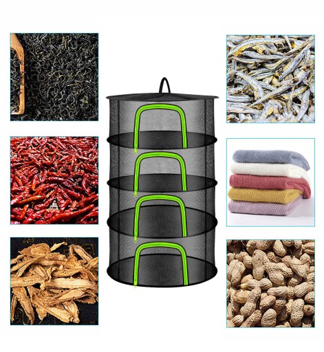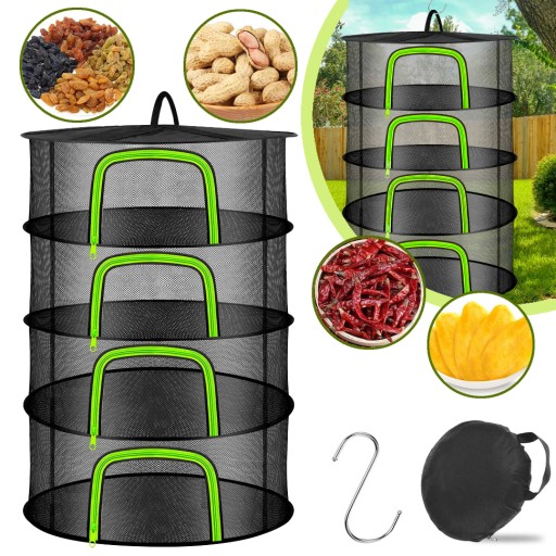 siatka do suszenia ma 4 warstwy o rozłożonej średnicy 60 cm i wysokości 20 cm na warstwę dla całkowitej wysokości 80 cm. Na każdej warstwie jest wystarczająco dużo miejsca, aby wysuszyć wiele roślin i ziół. Każda warstwa posiada niezależny zamek błyskawiczny, który można sortować i wysuszyć, aby uniknąć mieszania.