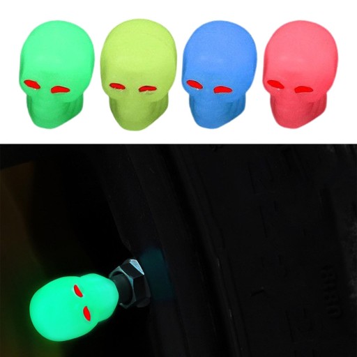 4x Nakładki na zawory opon samochodowych w kształcie czaszki, świecące do rowerów Suv