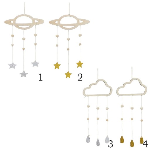 Облака Капли дождя Звезда Деревянный кулон Подвесные шторы для детей №1