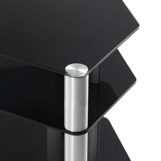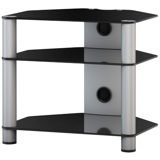 Idealny do każdego wnętrza aluminiowy stolik RTV ze szklanymi półkami na sprzęt audio-video. Blat stolika wraz z półkami został wykonany z płaskiego szkła hartowanego z polerowanymi krawędziami o bardzo dużej wytrzymałości.