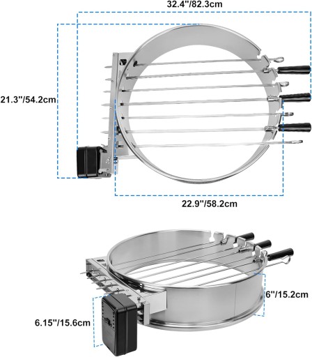 Łatwy montaż, umieść pierścień na grillu, włóż szpikulec do ramy, włącz silnik, grillowanie rozpocznie się przy niewielkim wysiłku, uwolnij ręce, usiądź z przyjaciółmi lub rodziną, aby pić i rozmawiać, nie martwiąc się o przypalenie jedzenia.