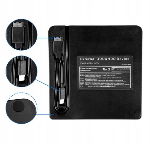 Zewnętrzny napęd CD ROM jest wyposażony w zaawansowaną technologię nagrywania i obsługuje płyty DVD+R, CD-ROM, DVD-ROM, CD-R, CD-RW. Wyposażony w interfejsy USB 3.0 i Type-C. Maksymalna prędkość odczytu DVD 8 razy; Maksymalna prędkość odczytu płyty CD wynosi 24 razy, a maksymalna prędkość zapisu płyty CD wynosi 8 razy. Szybsza transmisja danych (do 5 Gb/s) bez opóźnień i zniekształceń podczas odtwarzania muzyki lub filmów.