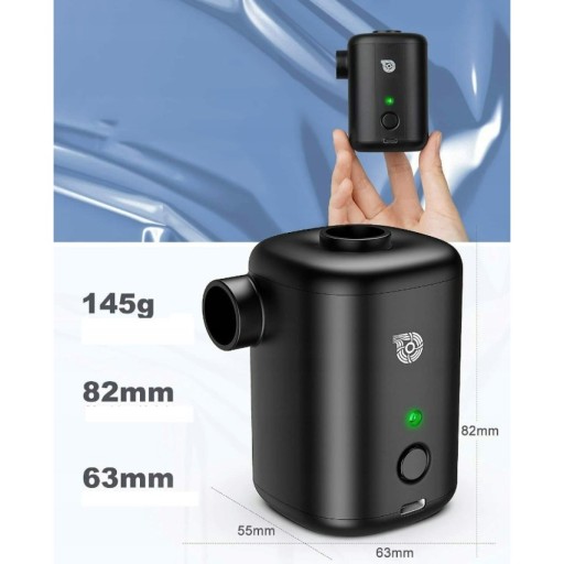 ★Mała bezprzewodowa, przenośna: w przeciwieństwie do innych przewodowych pomp powietrza dostępnych na rynku, elektrycznej pompy powietrza można używać nie tylko w domu, ale także na plaży, na kempingu i na imprezach na świeżym powietrzu. Całkowity rozmiar jest mały i znakomity, można go łatwo umieścić w plecaku, gdy nie jest używany, nie spowoduje to dodatkowego obciążenia.