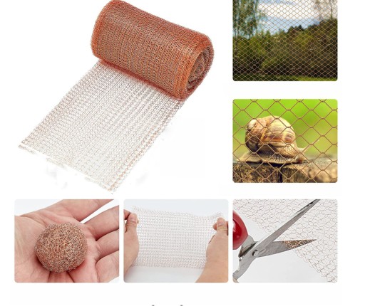 Ta miedziana siatka może być używana do blokowania otworów o dowolne kształty i rozmiarze. Łatwo ciąć, kształtować i instalować.