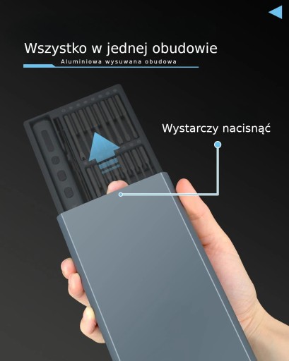 Etui do przechowywania narzędzi jest nie tylko funkcjonalne, ale także wyjątkowo estetyczne i praktyczne. Magnetyczna konstrukcja futerału utrzymuje wszystkie elementy na swoim miejscu, co pozwala na łatwą organizację i szybki dostęp do potrzebnych narzędzi. Mechanizm pop-up dodaje satysfakcji przy każdym użyciu, dzięki czemu korzystanie z zestawu jest nie tylko wygodne, ale także przyjemne. Nie musisz się już martwić o zgubione bity czy inne drobne elementy – wszystko będzie starannie uporządkowane i gotowe do użycia.