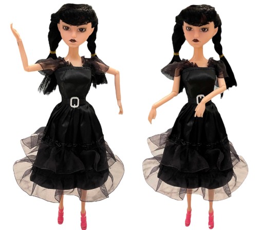 Lalka Wednesday Addams, ikoniczna postać z rodziny Addamsów. Lalka ta jest doskonałym dodatkiem dla każdego miłośnika serii lub kolekcjonera unikatowych zabawek.