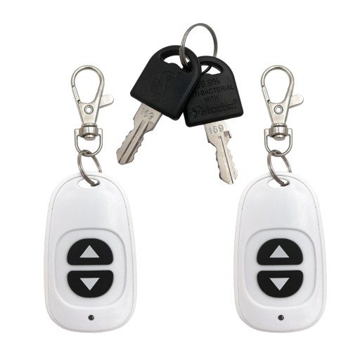 Pilot zdalnego sterowania (2 szt. w zestawie): Kompaktowe urządzenie, pozwalające na bezprzewodowe sterowanie blokadą z dowolnego miejsca w jej zasięgu. Umożliwia łatwe otwieranie lub zamykanie blokady parkingowej, zapewniając wygodę i bezpieczeństwo użytkowania prywatnego miejsca postojowego.