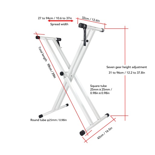 5. NIEZAWODNA STABILNOŚĆ I PRZENOŚNOŚĆ: Solidna metalowa konstrukcja zapewnia niezawodną stabilność klawiatury, dzięki czemu możesz grać pewnie. Dodatkowo stojak zaprojektowano z myślą o atwym przenoszeniu, dzięki czemu można go wygodnie transportować i używać w dowolnym miejscu.
