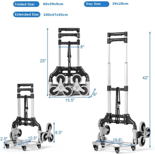 USEFUL COMPANION Idealny do przenoszenia cikich zakupów nie wicej kopotów z lugging groceries napoje i cikie pudeka Sprawdzony towarzysz dla targów festiwali lub outings szczególnie atwo na plecach. IDEAL DLA CLIMBING STAIRS Skadany wózek ma 3 solidne stubby koa na kadej stronie które mog atwo wspina si lub cign w dó schodów podczas przenoszenia przedmiotów. Ponadto jest dostarczany z 4 dodatkowymi koami wic moesz zdecydowa czy je doczy czy nie aby dostosowa si do wikszej liczby scenariuszy uytkowania. LEKKI I STABILNY Wózek wykonany jest z pogrubionej stali o niewielkiej wadze aby zapewni zarówno przenono jak i trwao. Maksymalny udwig wynosi 75 kg na równym podou i 35 kg na schodach. Wyposaony jest w elastyczn link dziki czemu przedmioty mog by mocno przymocowane do wózka co zapobiega przewracaniu si. MULTIPLE FUNCTIONS Teleskopowy uchwyt schodów climber moe by regulowany od 25 cali do 42 cali aby zapewni atwiejszy dostp dla uytkowników o prawie kadej wysokoci i moe by stosowany w wielu okolicznociach takich jak gleba kamyki trawa schody i betonowa podoga itp. FOLDABLE DESIGN Ten wózek po zoeniu zajmuje bardzo mao miejsca wic mona go przechowywa w kadym miejscu takim jak dom gara czy baganik samochodowy. A dziki prefabrykowanej konstrukcji mona go atwo rozoy poprzez pchnicie w dó powierzchni adunkowej bez dodatkowych narzdzi.