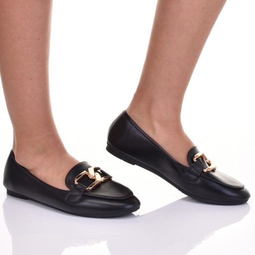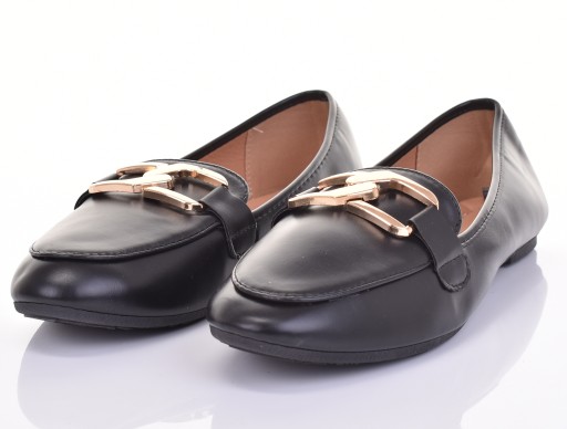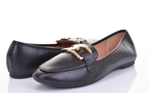 CZARNE PÓŁBUTY SKÓRZANE Z OZDOBĄ DAMSKIE MOKASYNY ELEGANCKIE