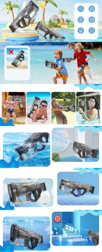 PISTOLET NA WODĘ ELEKTRYCZNY WODNY MIOTACZ DLA DZIECI - WODOODPORNY, AUTOMATYCZNY ODSYSANIA WODY, BARDZO DUŻY ZASIĘG ZE OKULARY OCHRONNE