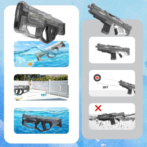 - ✅ W przeciwieństwie do większości dostępnych na rynku pistoletów na wodę, których nie można zanurzyć, zapewnia niezrównane wrażenia podczas pływania, surfowania lub imprez wodnych.