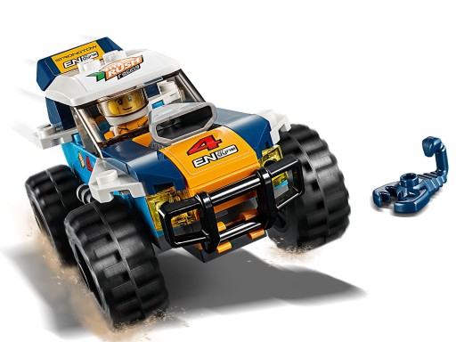 - W zestawie minifigurka kierowcy wyścigowego LEGO® City oraz figurka skorpiona,