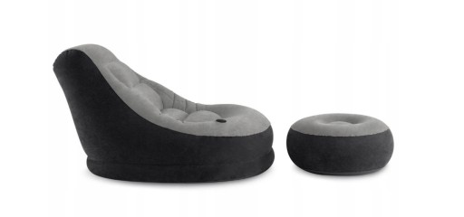 Dmuchany fotel z podnóżkiem marki Intex to idealna propozycja do Twojego domu. Został wykonany z mocnego i wytrzymałego materiału winylowego.