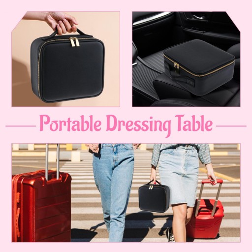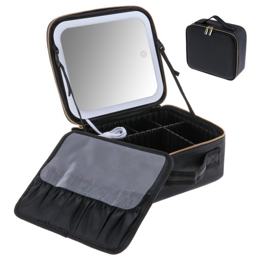 Podróżna kosmetyczka do makijażu z lusterkiem i lampkami Kosmetyczka Przenośna czarna