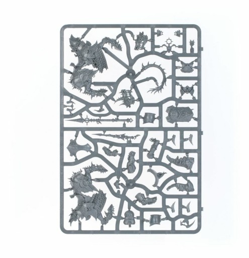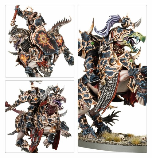 This multipart plastic kit builds Abraxia, Spear of the Everchosen, available here for the first time alongside three Varanguard. Abraxia is a powerful leader for the Slaves to Darkness, wielding the accursed spear Gorbolga and riding to battle atop the terrible Thanatorg. The hulking Varanguard that ride alongside her are almost as terrifying, each a Chaos-tainted champion demonstrating the very apex of martial prowess.