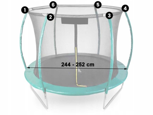 ✔ Siatka jest przeznaczona dla trampolin o średnicy 244-252 cm (8ft) Z SIATKĄ WEWNĘTRZNĄ MONTOWANĄ NA RINGU.