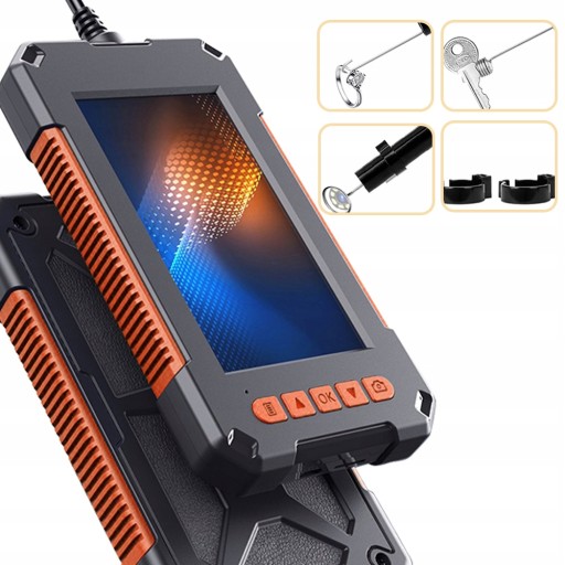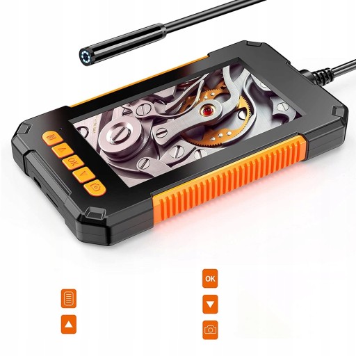 - Ten endoskop jest wyposażony w udoskonalony ekran IPS o przekątnej 4,3 cala, który oferuje szerszy kąt widzenia 180 stopni z każdego rogu, rzeczywisty kolorowy wyświetlacz i technologię dynamicznego oglądania wideo, aby zapewnić wyraźniejszy widok podczas każdej inspekcji.