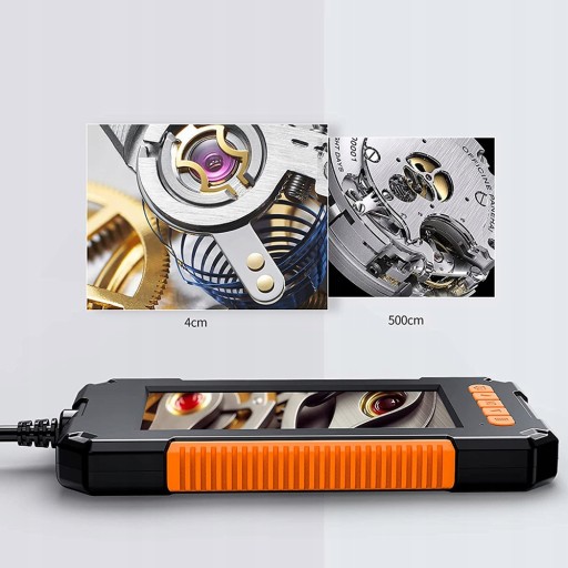 - Endoskop jest wyposażony w 8-milimetrową kamerę o wysokiej czułości z wyraźnym zakresem widzenia od 4 cm do 500 cm i oferuje wyraźną jakość obrazu, zarówno podczas ogólnej inspekcji, jak i w szczegółach.