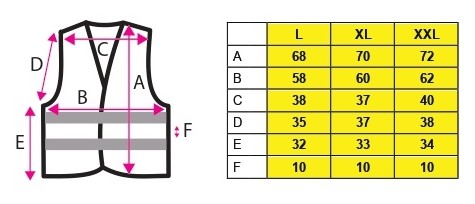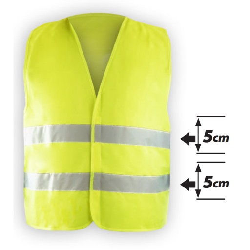Kamizelka odblaskowa została wykonana w 100% z poliestru. Posiada dwa poziome pasy odblaskowe o szerokości 5 cm. Dzięki temu użytkownik jest doskonale widoczny po zmroku. Kamizelka zapinana na rzep. Spełnia wymogi normy CE EN ISO 20471. Rozmiar L.