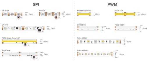 Pilot obsługuje taśmy PWM i SPI