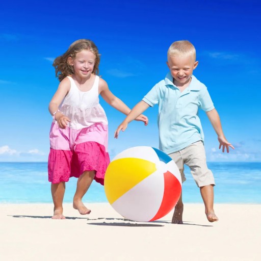 Dmuchana piłka sprawdzi się idealnie jako źródło rozrywki zarówno małym jak i dużym plażowiczom.